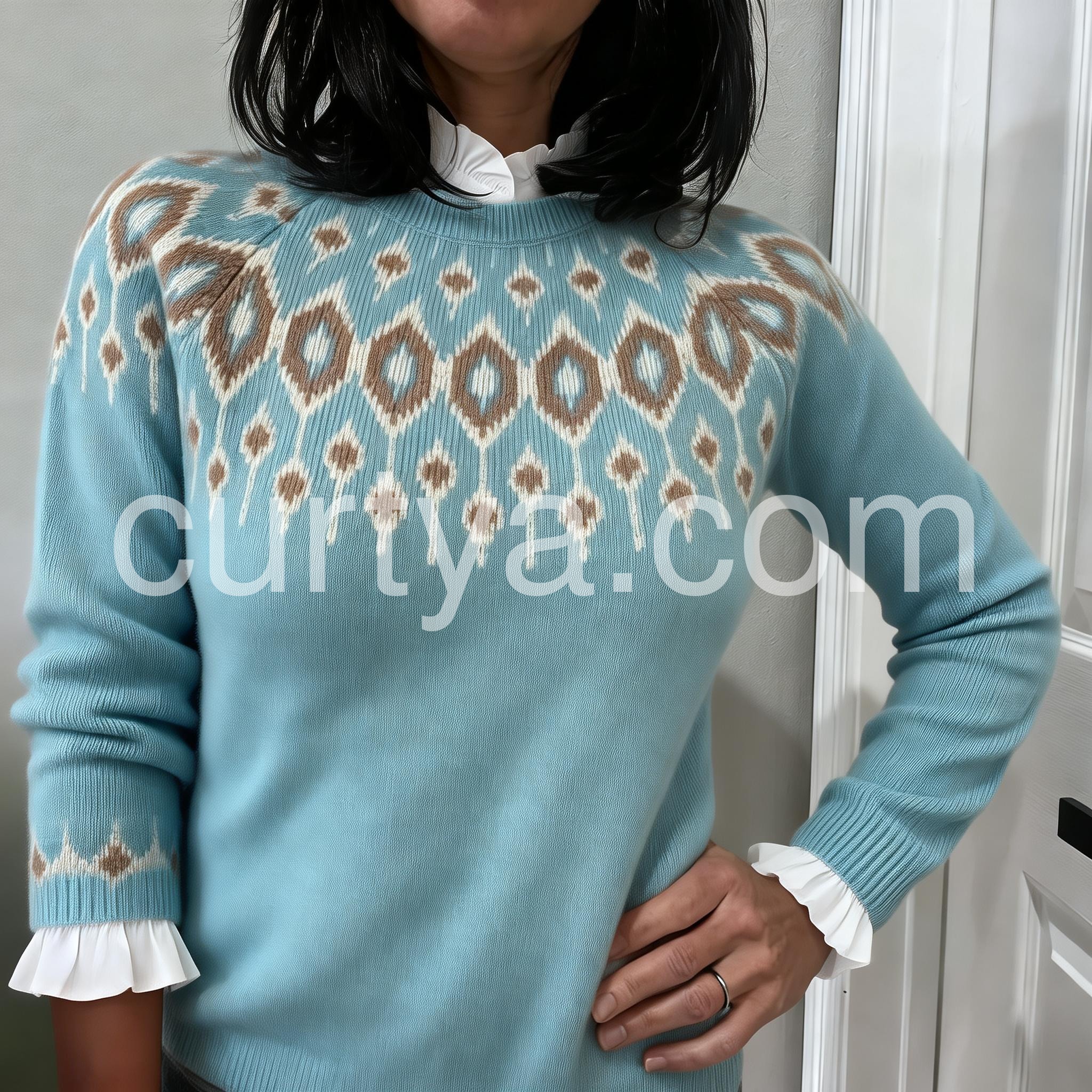 This Temperament Light Blue Round Neck Sweater is a must-have for any fashion-forward individual. Made from high-quality materials, it offers both style and comfort. The round neck design is perfect for any occasion and its light blue color adds a touch of elegance to any outfit. Stay stylish and comfortable with this must-have sweater.