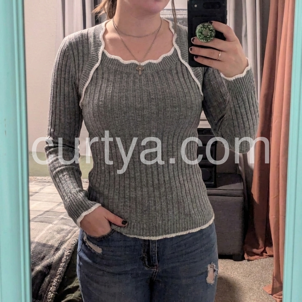 Stay cozy and stylish with our Grey Square Neck Long Sleeve Sweater. Made with high quality materials, this classic sweater offers a snug fit and an elegant square neckline. Enjoy the warmth and comfort of long sleeves, while looking effortlessly chic. Perfect for any occasion, this sweater is a must-have for your wardrobe.