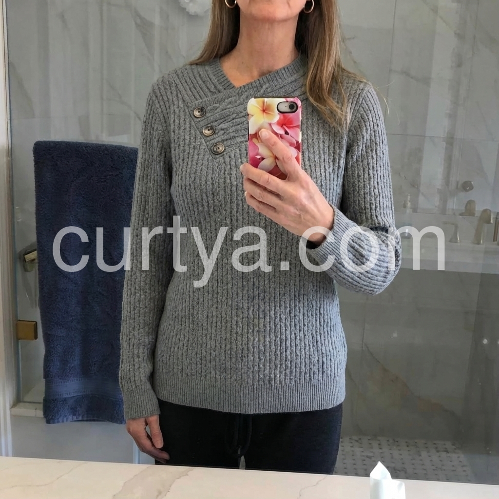 This versatile grey v-neck sweater delivers timeless sophistication with its refined knit construction. The long sleeves and classic v-neckline create a flattering silhouette suitable for layering or wearing solo. Crafted from quality knit fabric, it offers comfortable everyday wear while maintaining a polished appearance. Perfect for building a capsule wardrobe, this essential piece transitions seamlessly from casual to professional settings. The neutral grey tone pairs effortlessly with virtually any bottoms or outerwear in your collection.