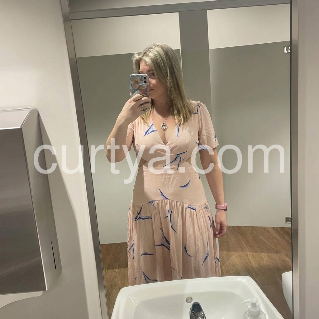 If there’s only one new item you buy this season, make it this bombshell dress. The head-turning maxi dress printed with feathery blue leaves is fashioned with sexy trimmed cutouts and seam at the hips that create soft gathering and an A-line shape. It’s perfect for date nights and beach days.