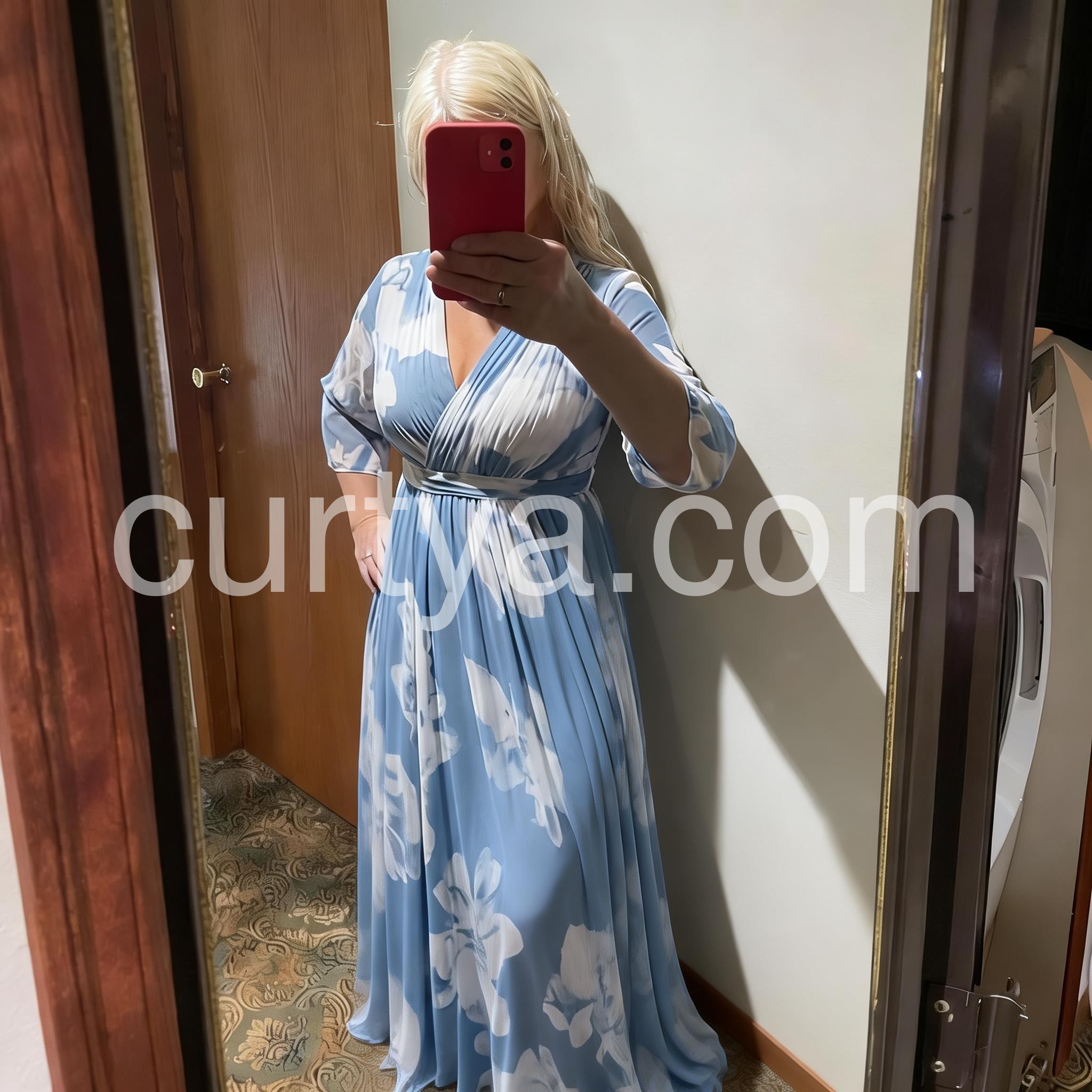 The Youthful Blue V-Neck Maxi Dress is a versatile and stylish addition to any wardrobe. Made from high-quality materials, this dress offers both comfort and durability. Its flattering v-neck design and flowing maxi length make it perfect for any occasion. Look and feel your best with this must-have dress.