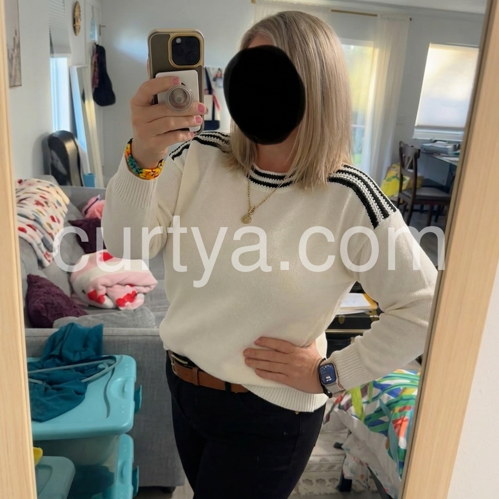 Ivory Color Block Round Neck Sweater