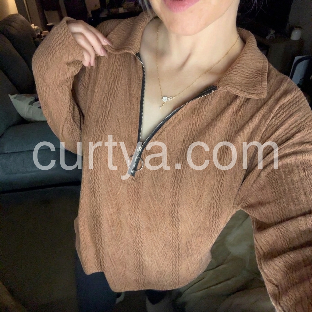 Retro Brown Plain Collared Top