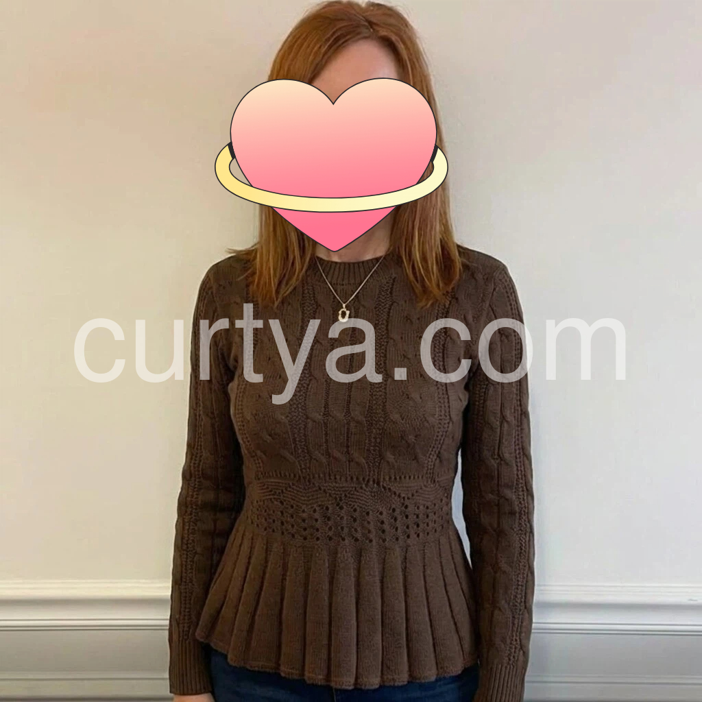 Elevate your autumn wardrobe with this sophisticated cable knit peplum sweater in rich coffee tones. The structured peplum hem adds contemporary dimension while the long sleeves and textured cable knit construction deliver both warmth and refined style. Perfect for layering or wearing solo, this piece transitions seamlessly from casual weekends to polished office settings. The classic color palette ensures versatile pairing with your existing pieces, making it an essential addition to any season-conscious closet.