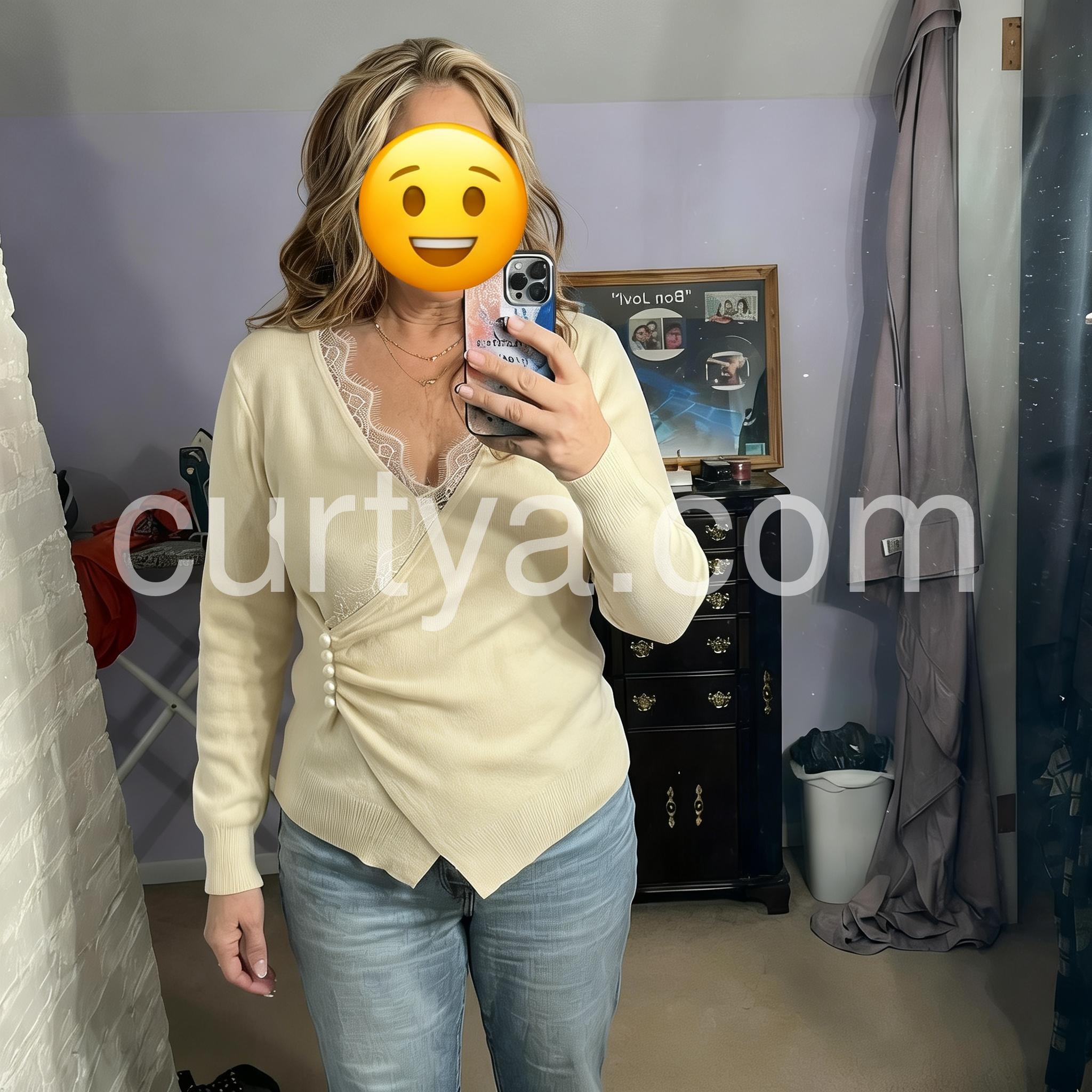 Elevate your knitwear collection with this refined wrap sweater, where timeless design meets contemporary styling. The delicate vintage lace trim detailing adds an unexpected sophistication to the clean, minimalist silhouette, creating a versatile piece that transitions seamlessly from casual to polished occasions. Crafted with careful attention to construction, the wrap design offers flattering draping and adjustable fit, while the plain knit base ensures effortless coordination with your existing wardrobe. A modern essential with vintage-inspired accents.