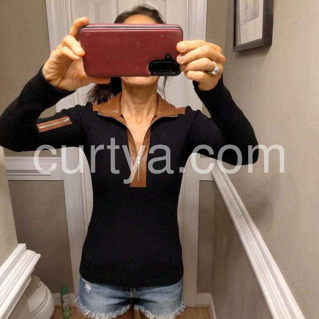 Elevate your everyday wardrobe with this sophisticated half-zip long sleeve top. Crafted in a timeless black hue, it seamlessly transitions from casual outings to professional settings. The half-zip design offers versatile styling options and practical temperature control, while the long sleeves provide coverage and a polished silhouette. Perfect for layering or wearing solo, this essential piece delivers understated elegance with modern functionality.