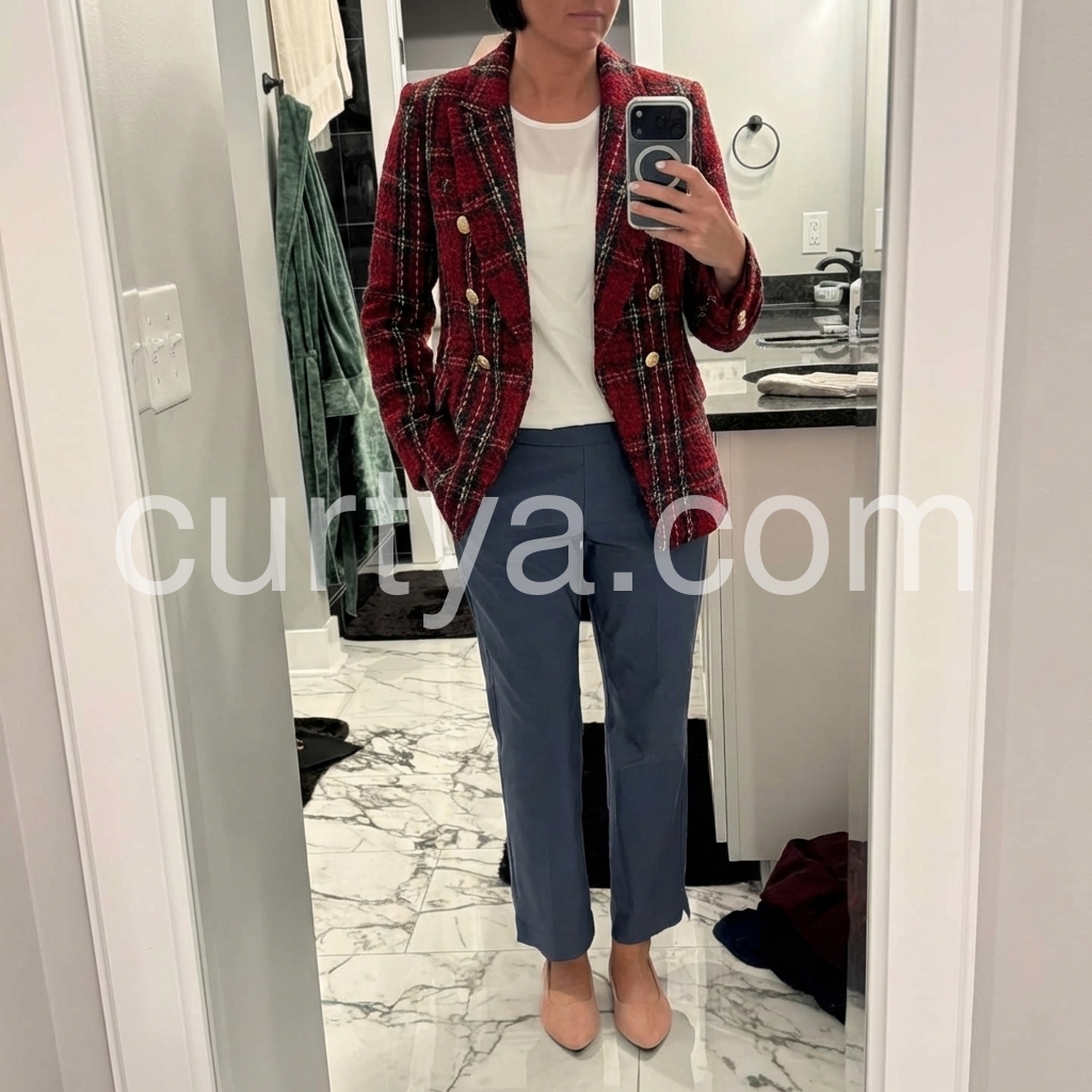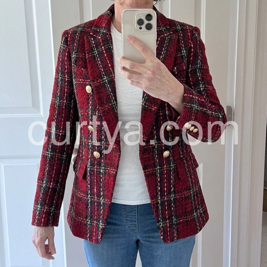 Red Long Sleeve Check Blazer