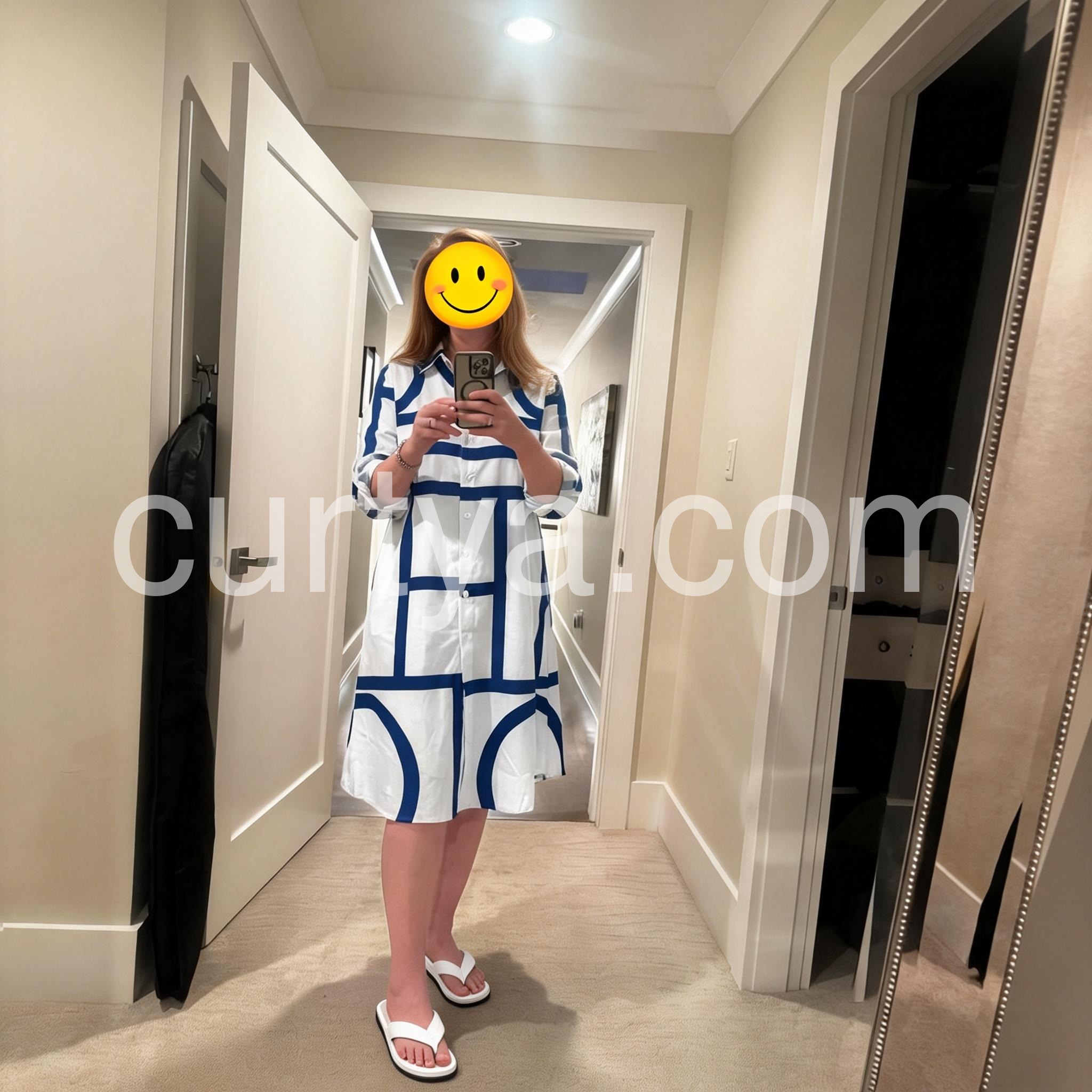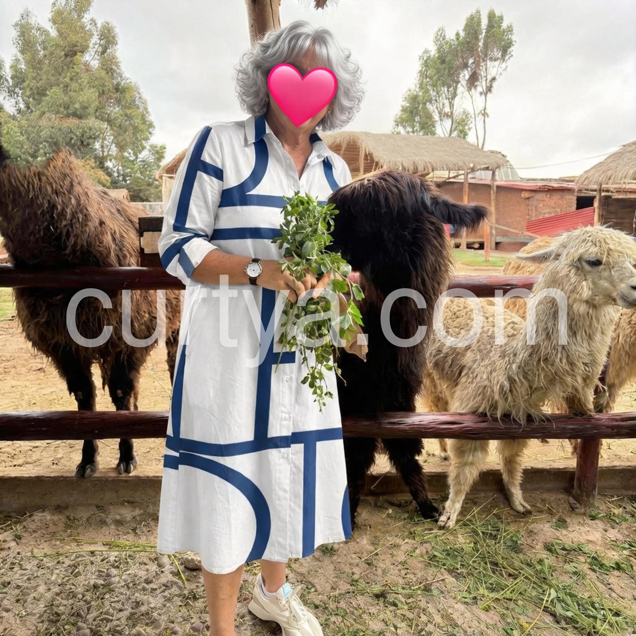 This trendy midi dress features a stylish striped print and a collared neckline, making it a versatile and fashionable addition to any wardrobe. With its eye-catching design and comfortable fit, this dress is perfect for any occasion and will keep you looking chic and on-trend. Upgrade your style with this must-have piece.